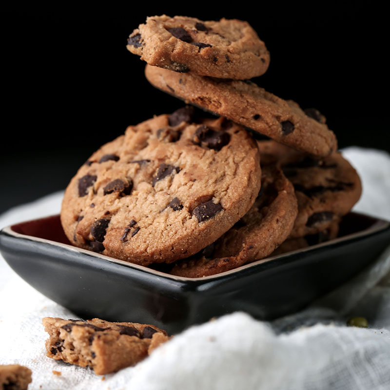 吃的到巧克力顆粒,大人口味苦甜巧克力,低糖獨家配方餅乾。